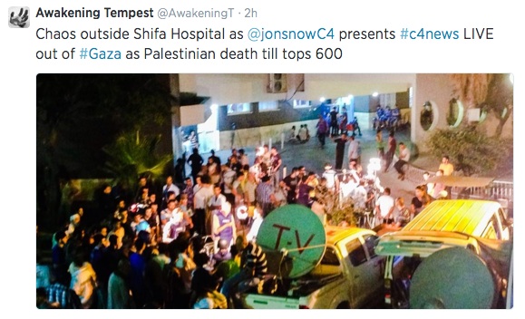 One tweet about half of Gaza City now covered with white phosphorous gas as of Tuesday afternoon: