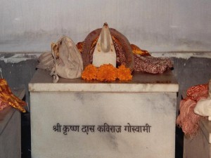 In Vraja lila Krishna Dasa Kaviraja is Kasturi-manjari, one of the eight most intimate maidservants of Srimati Radharani. His samadhi is at Radha-kunda, and at the Radha-Damodara Temple according to some.
